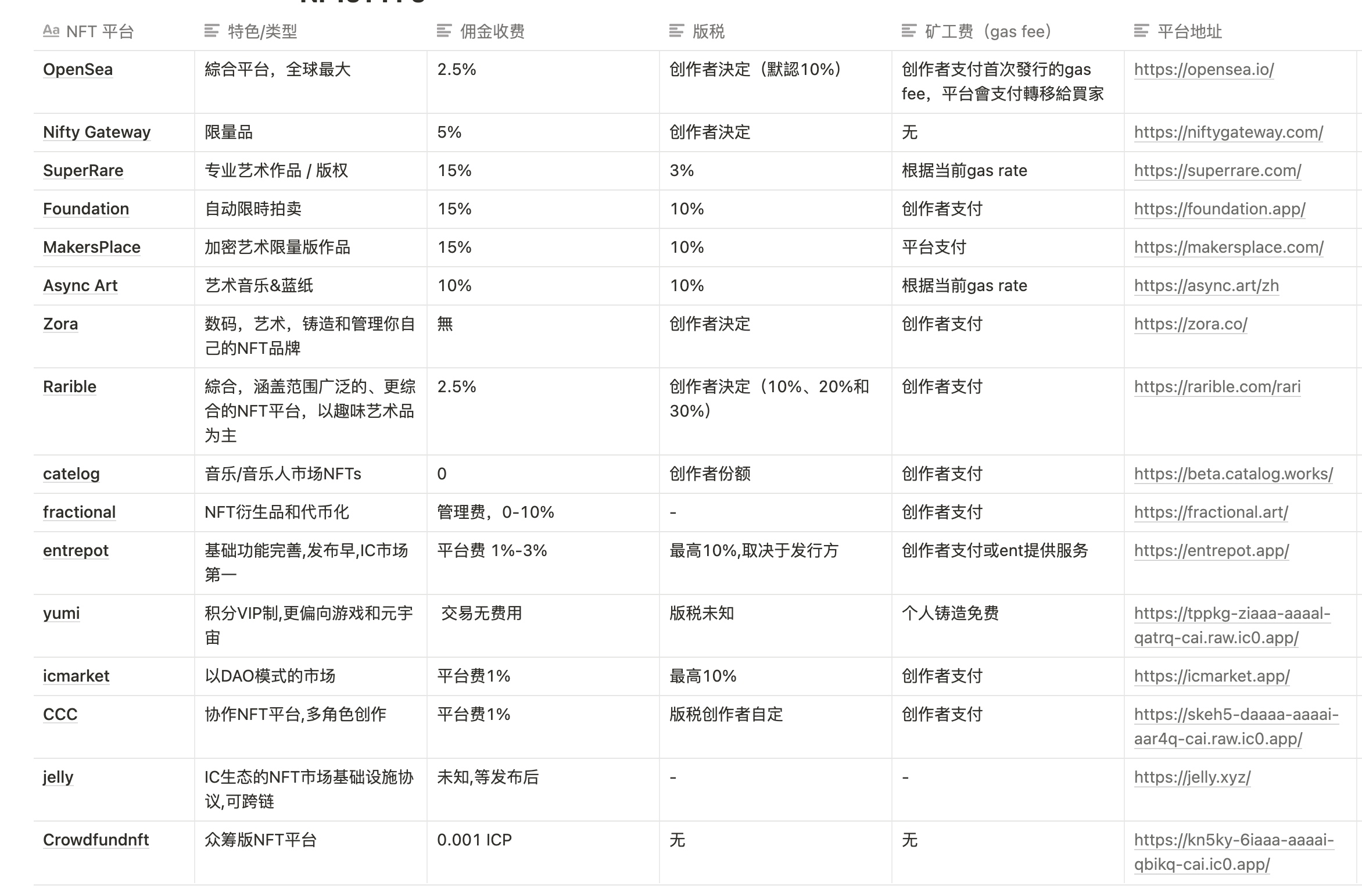 上图我列出了目前比较主流的 NFT 平台,并把 IC 生态的几个 NFT 平台加入进入,它们将是我持续的观察列表,不知未来谁会是 IC 新崛起的龙头.